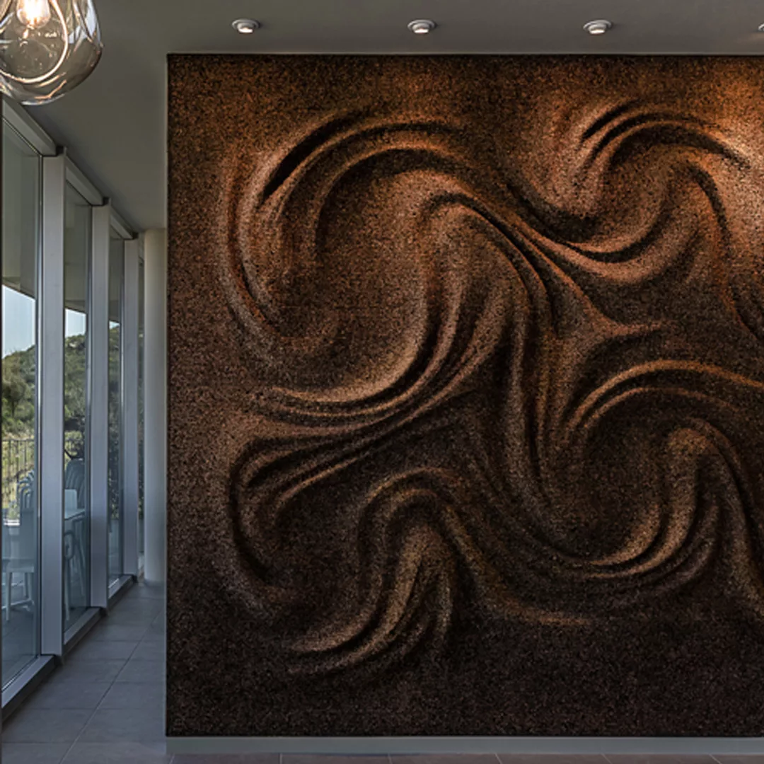 Cork is an outstanding choice for sustainable design due to its renewable and versatile nature. Harvested from the bark of cork oak trees without harming them, cork is an eco-friendly resource that regenerates over time. It offers excellent thermal insulation, making it ideal for building facades, and can also be used in furniture. Our 100% natural cork contains no glue, ensuring the product remains fully sustainable. Additionally, the production process is nearly self-sufficient, with 95% of the energy sourced from cork’s own biomass. Cork’s flexibility, including the ability to be carved into intricate 3D designs, allows builders and designers to create high-performance, beautiful, functional, and environmentally responsible spaces.