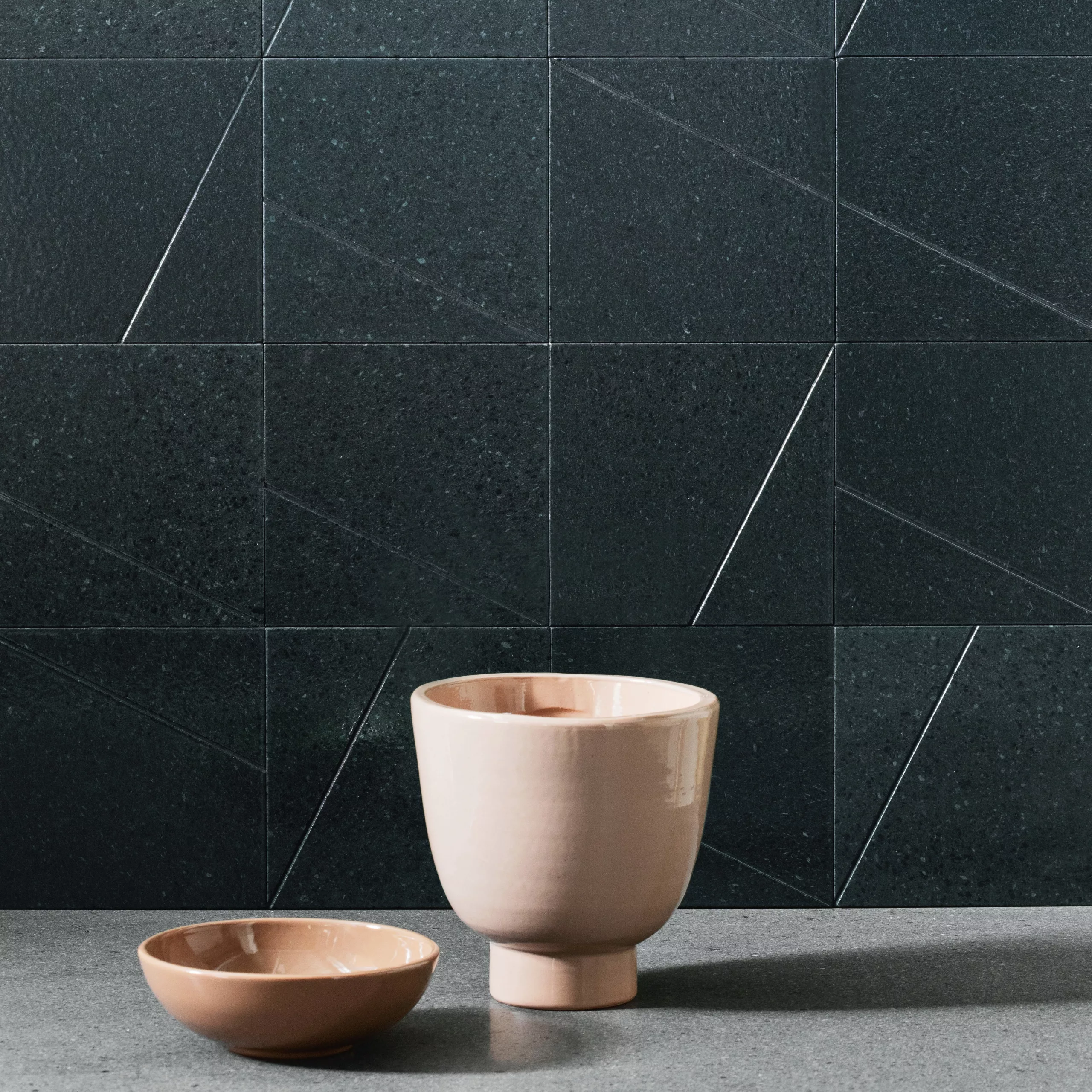 The Path Tiles collection explores movement and direction through linear patterns etched into lava stone. Available in raw lava stone or glazed lava stone, the material offers a rich tactile surface that enhances the depth of each line. The paths running across the tiles can be customised and combined, allowing compositions to flow, intersect, or change direction, creating surfaces that feel both structured and organic. Designed for flexible layouts, Path Tiles transform walls into dynamic landscapes shaped by individual interpretation.