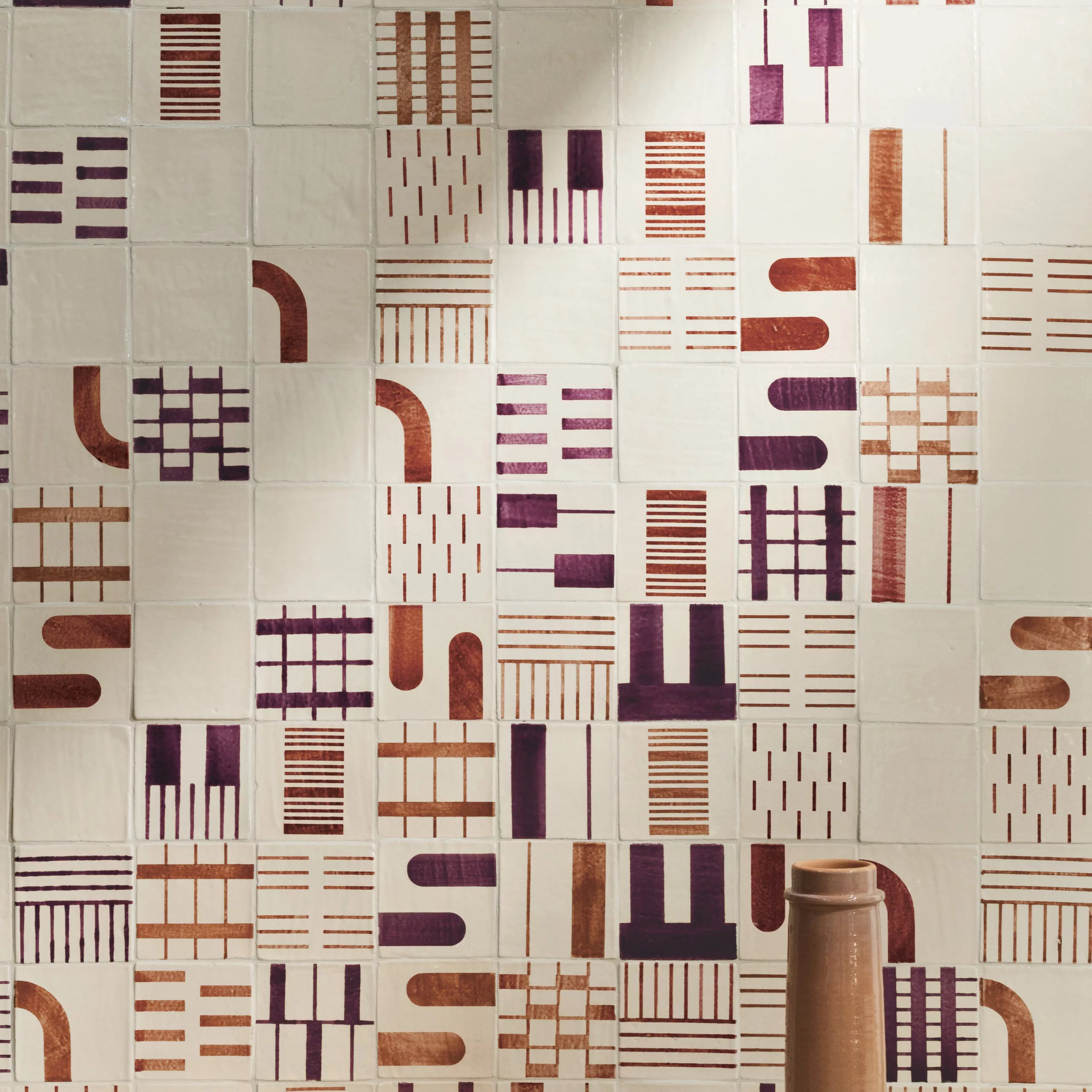 The Mixed Decoration Tiles reinterpret the rhythms of form and colour. They transform traditional figurative motifs into abstract signs and geometric compositions. Saturated tonalities distil historic colour palettes into a contemporary visual language, creating a modular “alphabet” of forms designed to compose new narratives across interior surfaces.