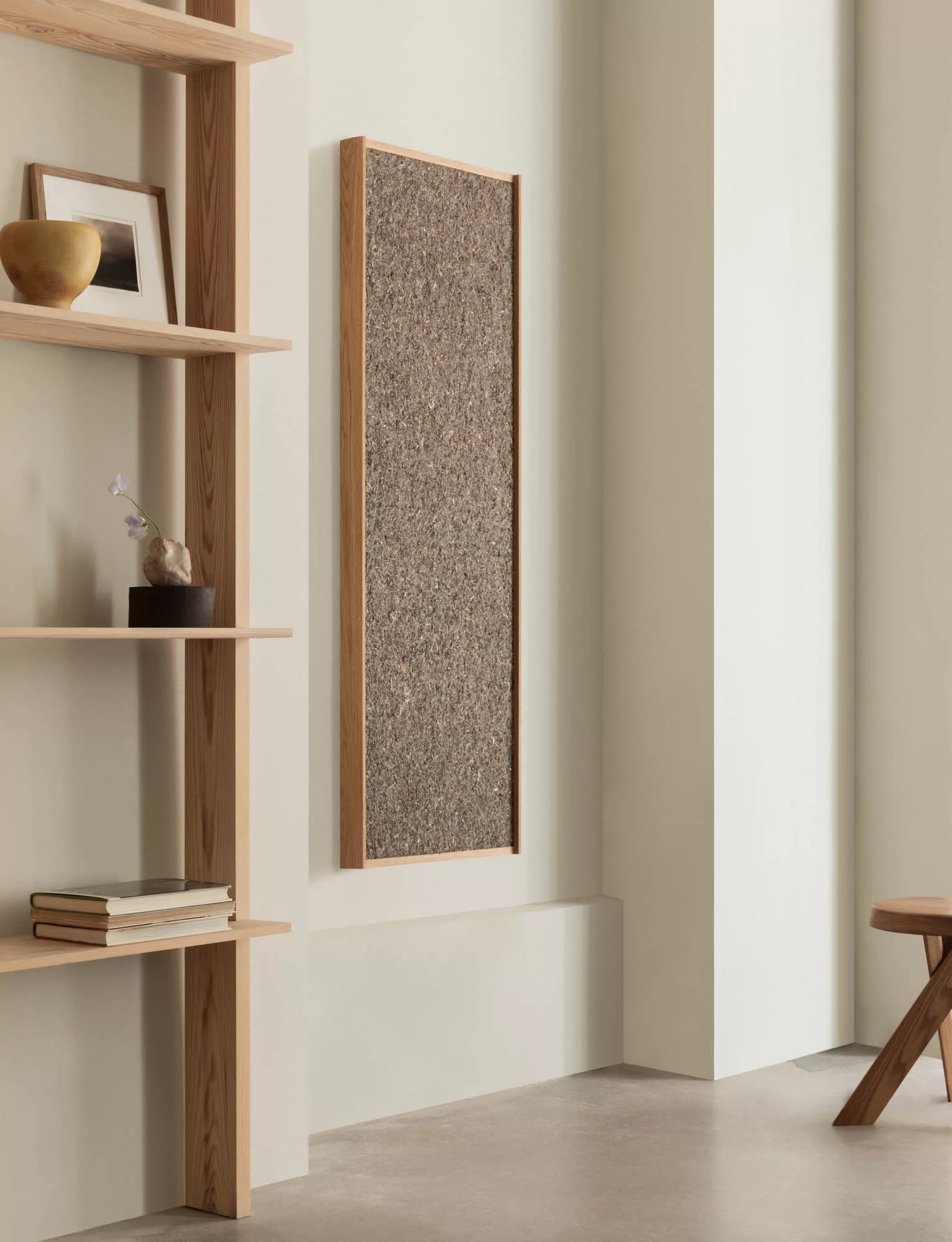 Eelgrass Wooden Frames combine natural eelgrass with solid oak frames, offering sound absorption with a refined, architectural finish.