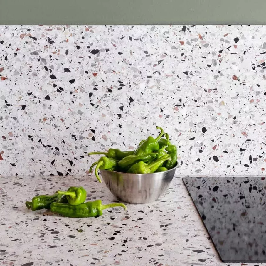 All our recycled terrazzo, including the Slabs collection are produced in Italy; using recycled marble of up to 80% recycled content in the terrazzo. The materials in the collection are available in different standard sizes. Bespoke sizes are also available to meet the specific requirements of your projects.
