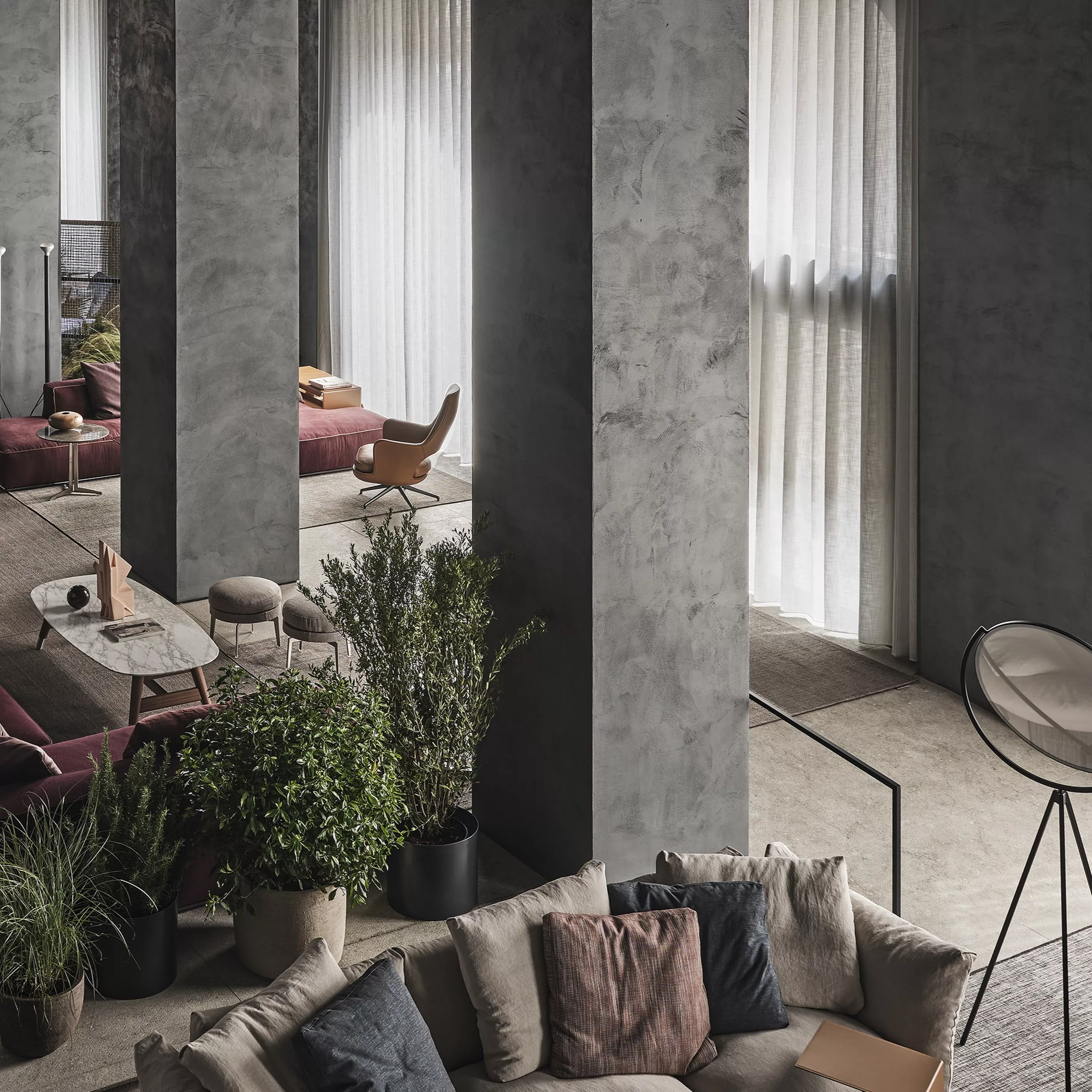 Applied by hand, it produces a natural, non-uniform texture with rich tonal variation—ideal for projects emphasizing material depth and tactile quality. Available in Matteo Brioni’s 18 standard colors or fully customizable, with bespoke finishes offered for tailored design integration.