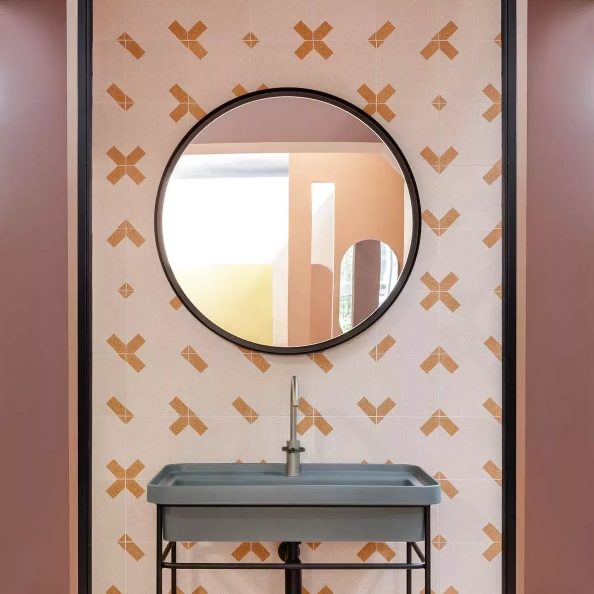 Traverso S, part of the Optical Trips Collection, is crafted from recycled terrazzo material. This collection features bold decorative elements with straight lines at 90° and 45°, creating a strong visual impact. With dimensions of 20×20, the geometric, minimal, and modern configuration of Traverso S makes it suitable for both indoor flooring and wall coverings. Available in both matt and glossy finishes, this product offers a wide range of colors for customization, allowing it to adapt seamlessly to any design aesthetic.